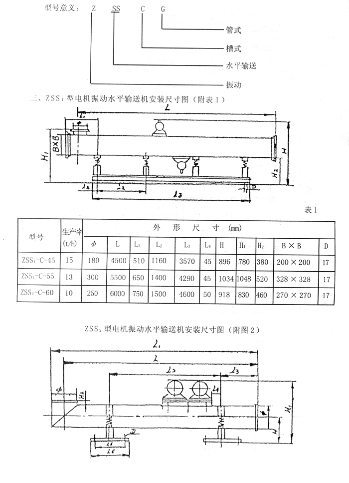 ZSS型電機(jī)振動(dòng)水平輸送機(jī),見圖,結(jié)構(gòu)合理,安裝方便、耗能低??砂殡S干燥、冷卻、清洗,除去有害氣體等工藝過(guò)程。